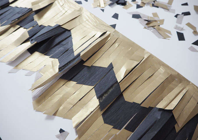 Repeat for the last sheet of tissue, cutting it in half to make it shorter than the black sheet of tissue that you used before.
